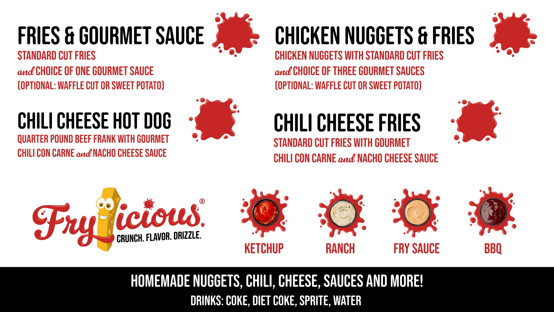 At Frylicious, we’re all about bold flavors and crispy bites. From golden fries paired with gourmet sauces to delicious chicken nuggets, chili cheese fries, and quarter-pound chili cheese hot dogs, every order is crafted to satisfy your cravings.